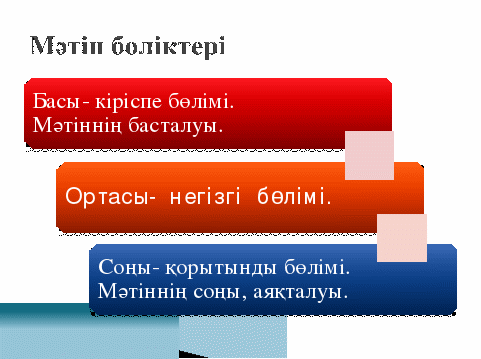 Мәтін бөліктерімен жұмыс (3 сағат) Мәтіннің кіріспесі, негізгі, қорытынды бөлімі, азатжолдар