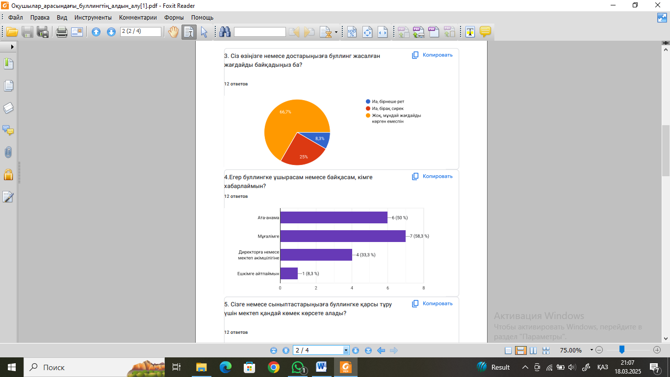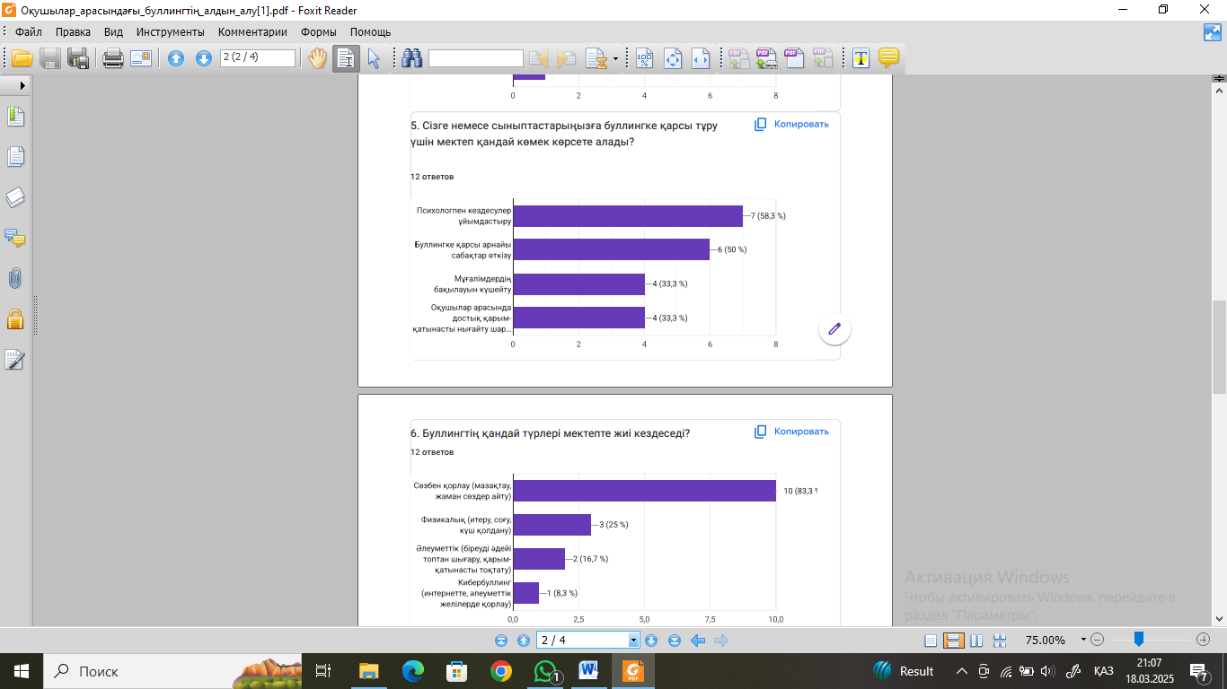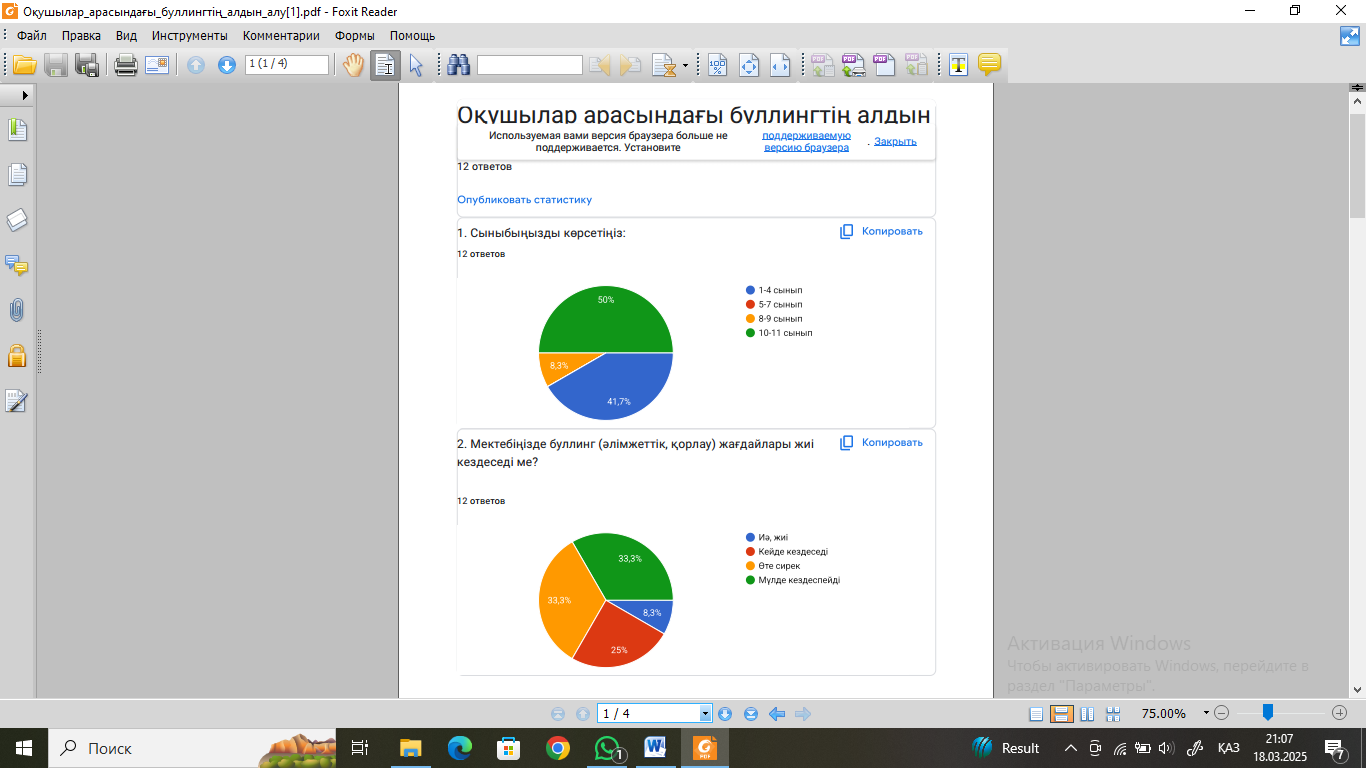 Сауалнама қорытындысы: Оқушылар арасындағы буллингтің алдын алу