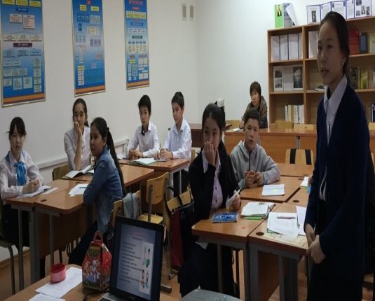 Сонымен қатар 6- сыныпқа Food and drink, Buying food, My first day at school, School uniform, Health problems, Invitation, My summer holidays, 8- сыныпқа Cities of Kazakhstan, Speaking about Kazakhstan, Bill Gates and computer, My school day тақырыптарына өткізген сабақтарымда осы әдісті топтық және жұптық жұмыс ретінде қолдандым. [5]