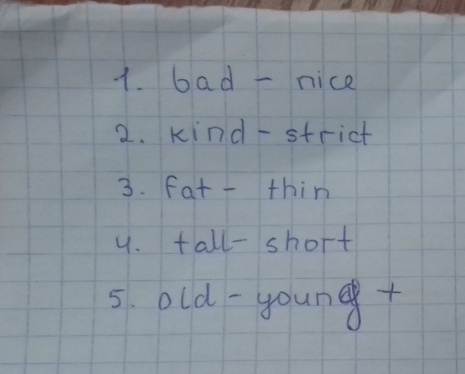 Мысалы: 5- сыныпқа үйге берілген тапсырма Write opposites of the following words.