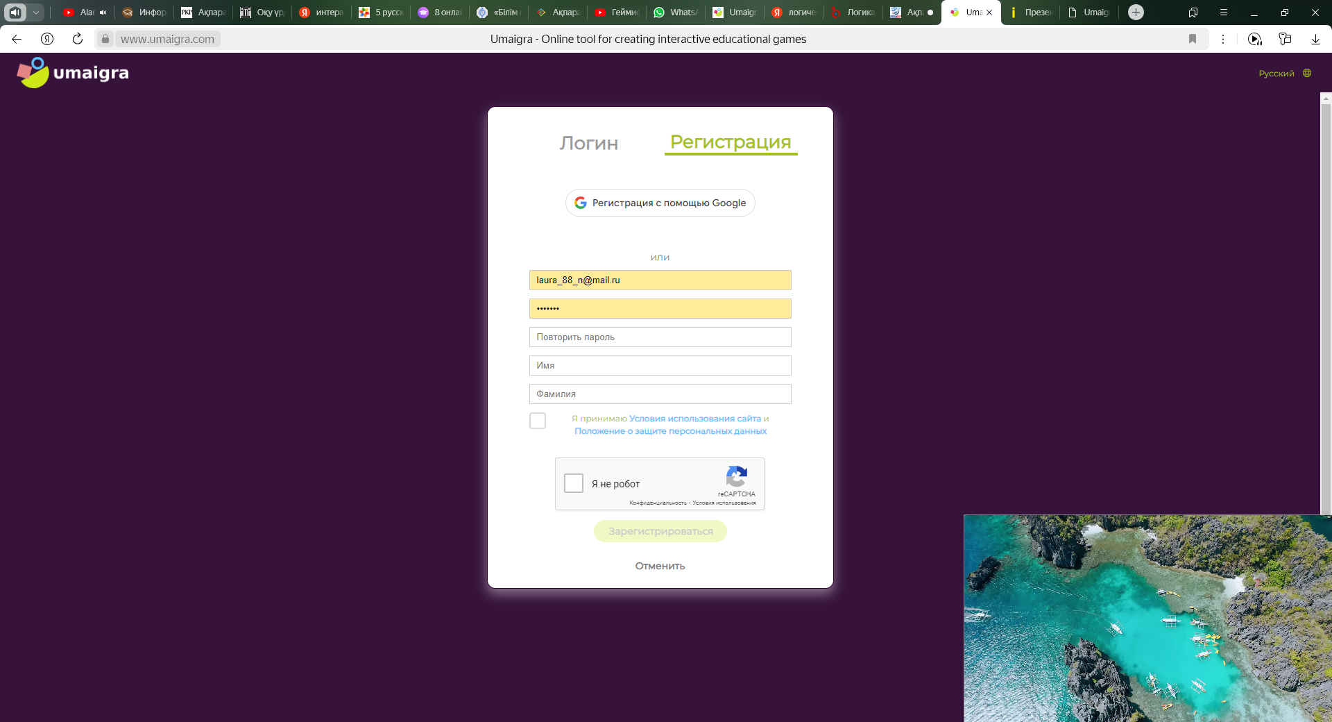Сурет 2- Umaigra.com сайтына тіркелу беті.