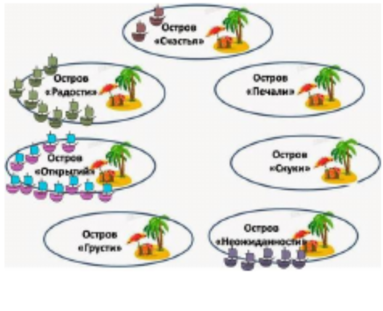 «Острова» На доске или у каждого ученика карта настроения. Поставьте знак √, на каком из островов вы сегодня пребывали: о.Страха, Познания, Уверенности, Скуки, Мечты, Будущего, Радости. |