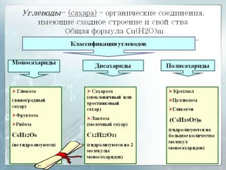 Углеводы, или сахара – это органические вещества, состав которых может быть описан формулой Cn(H2O)m. К углеводам относятся моносахариды, олигосахариды и полисахариды.