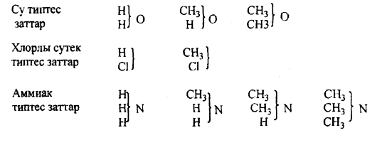Радикалдар теориясының орнына оған қарағанда жетілдірілген типтер теориясы келді. Органикалық заттарды типтер теориясын жақгаушылардың (Жерар, Колъбе, Кекуле) ұсынысы бойынша, сол заттардың түсетін реакцияларының типтері бойынша ғана классификациялады. Типтер теориясының негізін салушы Жерар (1832 ж.) органикалық заттарды бірнеше типтерге бөлді: су, хлорлы сутек, метан, аммиак типтес заттар.