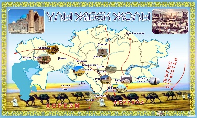 Ой шақыру. Тақырыпқа шығу. Орталық Азия халықтарының мәдениетіне тән ортақ суреттер топтамасы ұсынылып, (Ұлы Жібек жолының картасы, ою-өрнек, текемет, жылқы, үзеңгі, ыдыс-аяқ, зергерлік бұйымдар, т.б. ) оқушыларға төмендегі сұрақ қойылады
