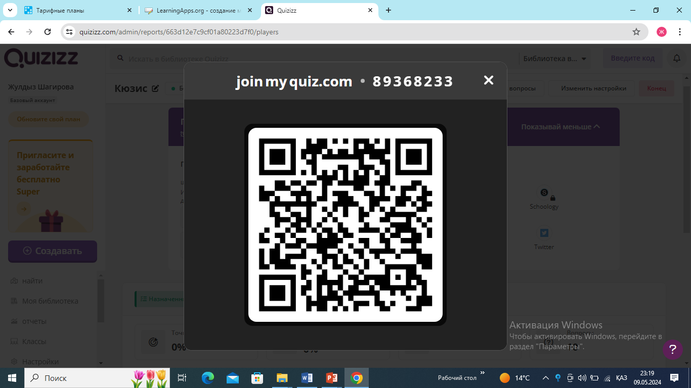 Quizizz.com сервисінде орындалады https://quizizz.com/join?gc=89368233 сілемесіне немесе QR кодты сканерлеу арқылы мобильді телефонда тапсырма орындайды |