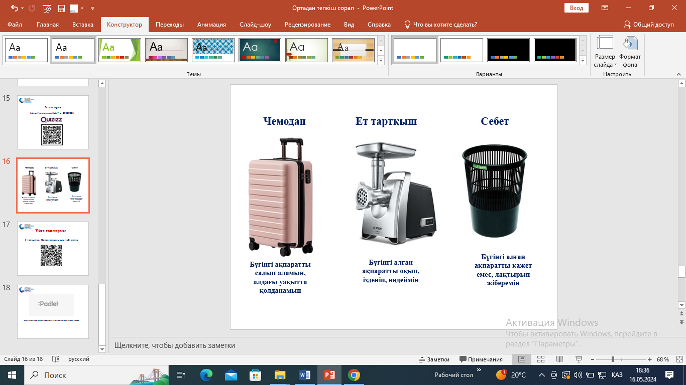 1) Рadlet тақтасына сілтеме бере отырып, бүгінгі өткен сабақтың ақпараттарын оқу.