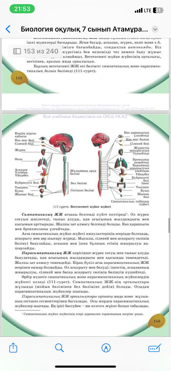 Оқушылар видеороликте көрсетілген материалдарды және термин сөздерді дәптерлеріне жазып алады. Тапсырма 1. Оқушылар видеороликтегі мәліметтерді пайдала отырып орындайды,суретке қарап симпатикалық және парасимпатикалық жүйке жүйелерін салыстырады;