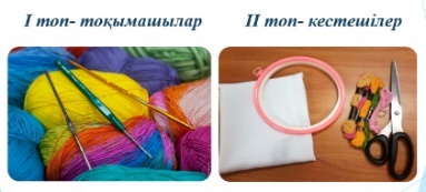 Қосымша 1. Топтарға бөлу Иллюстрациялық материалдары: бисерден, макраме және т.б. орындалған бұйымдар, СҚӨ заттары. |