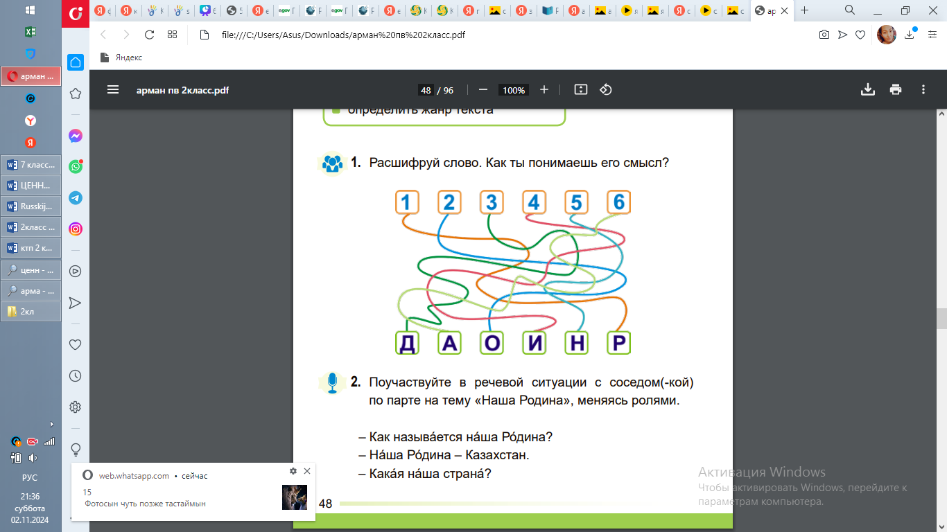 Предлагает прочитать в паре упр 2 и расскажите на родном языке что вы знаете о символах Казахстана? -Словарная работа: напишите в тетради и прочитайте громко! Ро́ дина – Отан страна́ – ел ска́ зка – ертегі Флаг – Ту Герб – Елтаңба Гимн – Әнұран О |
