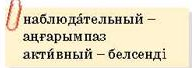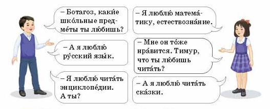 Учащиеся приветствуют друг друга. Отмечают отсутствующих. Создают коллаборативную среду. Прогонизируют тему урока Учащиеся слушают стихотворение, участвуют в беседе отвечают на вопросы, делятся своими впечатлениями. Высказывают своё мнение о том, нужно ли задавать вопросы, чтобы узнать больше. Учащиеся рассматривают Картинки в парах составляют по картинкам вопросы, задают их одноклассникам. Учащиеся читают предложения отвечают на вопрос «Как вы понимаете предложения?» Должен каждый ученик к знаниям стремиться. Всё, что знает человек, в жизни пригодится. Учащиеся читают диалог. Находят ответы на поставленные Жанарой вопросы. Учащиеся составляют сложные предложения, вставляя союзы и, а, но. Учащиеся записывают в тетрадь. |