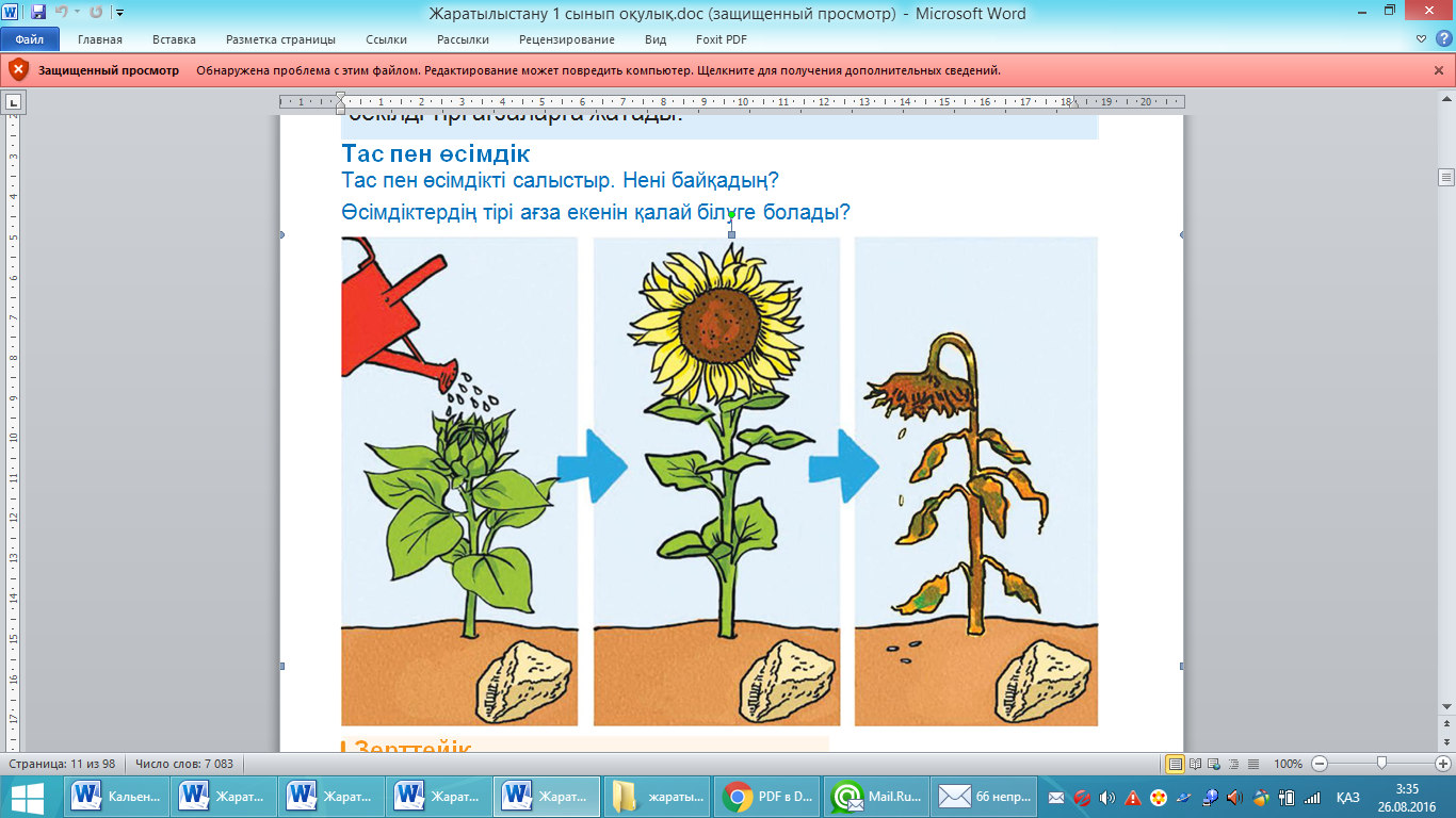 Тас пен өсімдік Тас пен өсімдікті салыстыр. Нені байқадың? Өсімдіктердің тірі ағза екенін қалай білуге болады?
