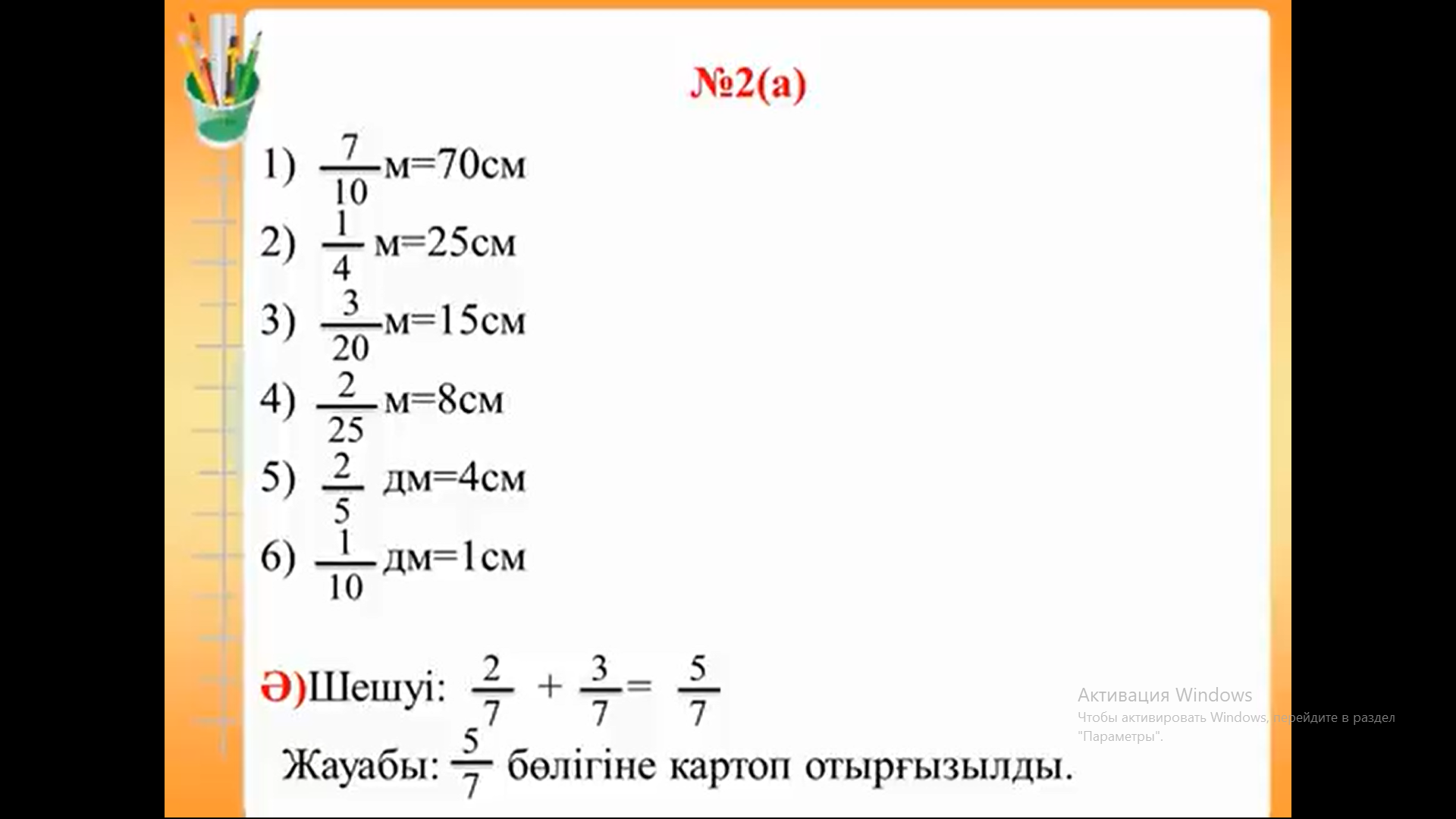 4.1.1.6. дұрыс бөлшек, бұрыс бөлшек, аралас сандарды ажырату 4.5.1.3 бүтіннің бөлігін табуға берілген есептерді талдау және шығару; кері есеп құрастыру, шығару |
