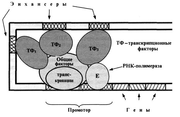 Эти факторы имеются во всех ………………………………..и необходимы для «прочтения» любого ………………………………………… гена. Другие транскрипционные факторы ……………………………………….активность только …………………………………генов, и локусы ДНК, …………………………………. … такие факторы, называются энхансерами.