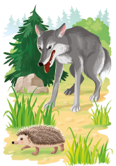 Однажды бежал по лесной тропинке ёж. Голодный волк набросился на него из-за