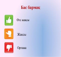 Тапсырманы орындағанда оқушыны мадақтау, толықтыру жасау, тиімді кері байланыс орнату. ҚБ «Бас бармақ»