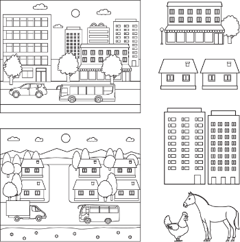Жаңа тақырып Тақырыпты ашу 1-тапсырма Қаланың және ауылдың суреттерін боя. Қала мен ауылдың айыпмашылығын суреттер мен бейне фильм арқылы түсіндіреді 2-тапсырма Сәйкес суреттерді сызық арқылы қос. 3-тапсырма Өзінің тұратын мекен жайыңды жаз Үй жұмысы 2-тапсырма Суреттерді боя.