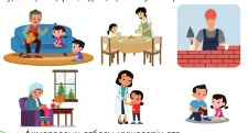 Дескриптор: - Сынып ішінен отбасы тақырыбына байланысты суреттерді табады; -Сурет бойынша сұрақтарға жауап береді; - Ақмаралдың отбасы мүшелерін атайды; -Ақмаралдың отбасы бір-біріне қамқор бола алатындығын сурет арқылы нақты мысал айтып дәлелдейді;