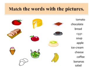 Watch the video And name the words Fruits, cake chocolate, cheese, lolly pop