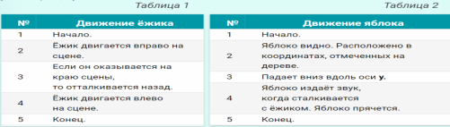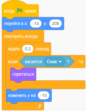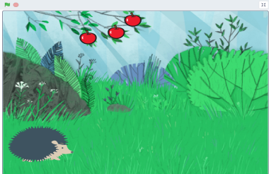 Подумай Как изменить скрипт проекта «Трудолюбивый ёжик», чтобы добавить ещё одно яблоко? В каких целях используются команды спрятаться и показаться в скриптах проекта? Дескрипторы: