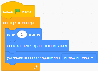 3.4.2.4 реализовать циклический алгоритм при создании игры в игровой среде программирования. Организовывать движение персонажей в среде Scratch. |