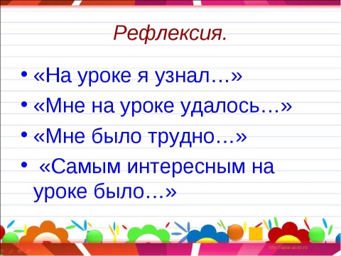 Рефлексия по уроку.