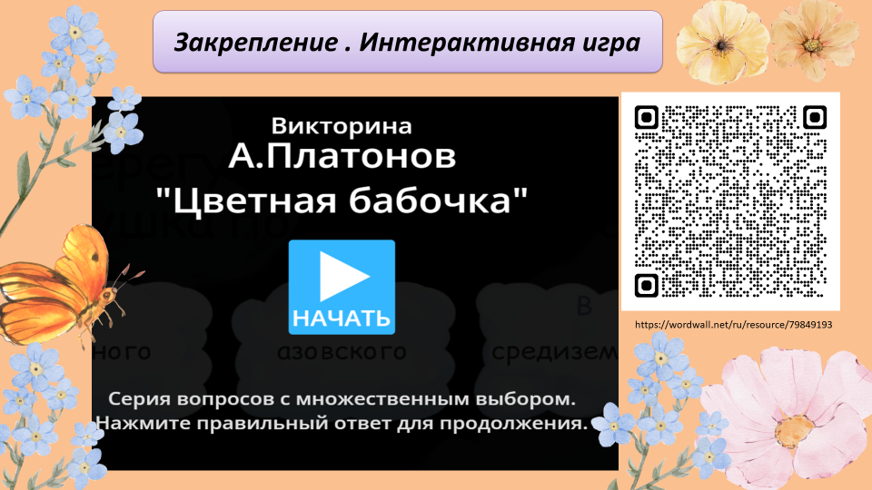 Познакомить учащихся с произведением Андрея Платонова «Разноцветная бабочка» |