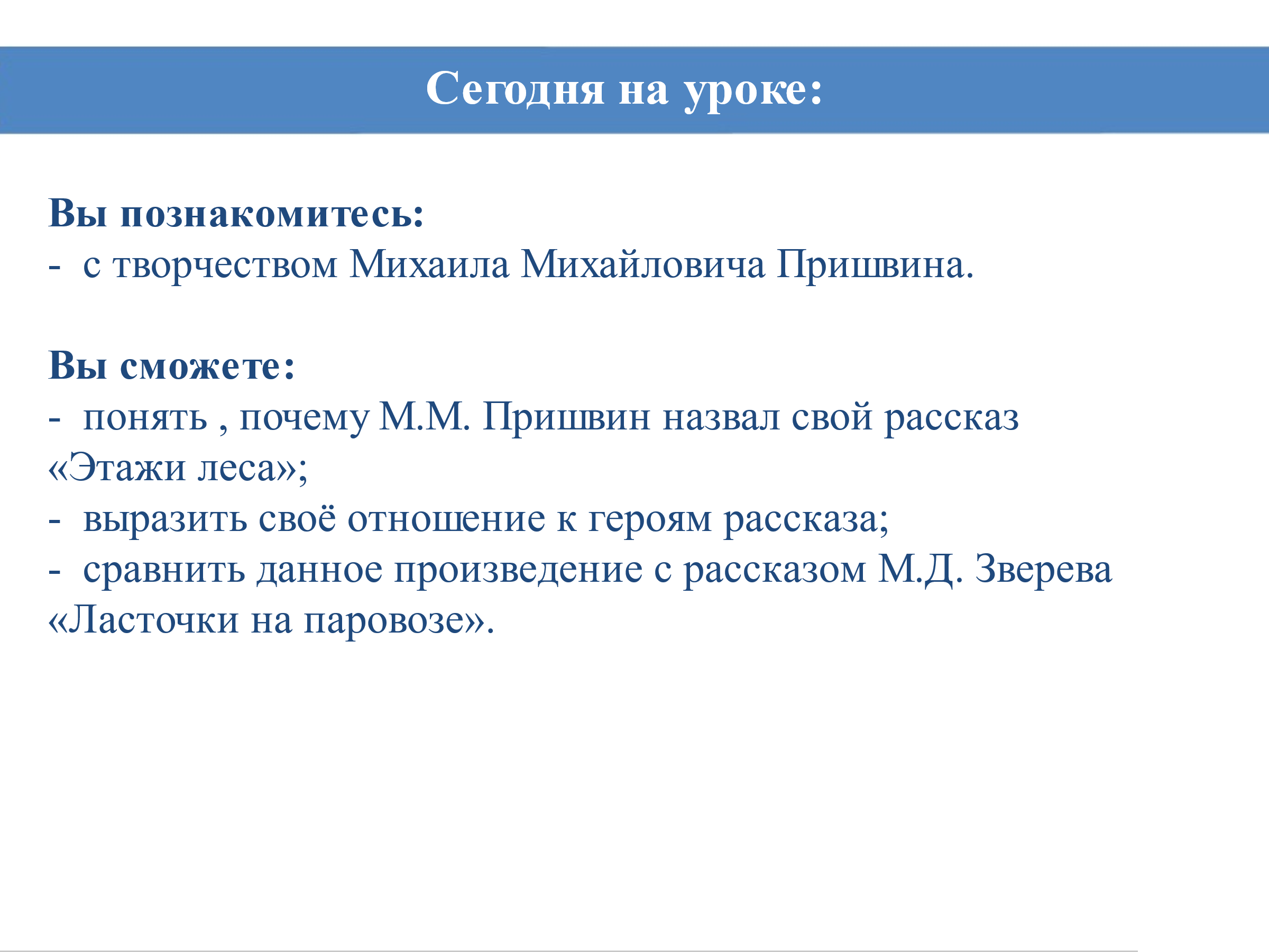 творчеством Михаила Михайловича Пришвина; понять , почему М.М. Пришвин назвал свой рассказ «Этажи