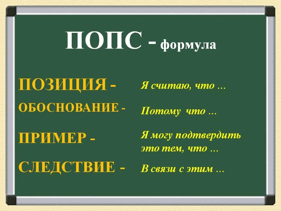 V. Закрепление изученного материала. П. Прием. «ПОПС-формула»