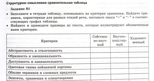 Задание 81найдите признаки характерные для разных стилей речи. Найдите и приведите примеры из текста, которые илюятрируют обозначенные критерий
