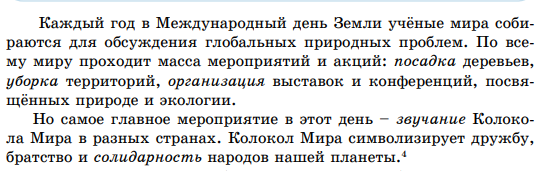 Определяют тему текста. формулируют вопросы по содержанию прочитанного текста и ответьте на них, выражая свое мнение по данной теме. Выписывают из текста слова с –эко-. Объясняют их значение. Продолжают ряд однокоренных слов с этими словами. |