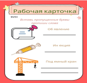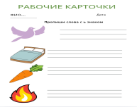 -участвуют в игре - знакомятся с темой и целями урока -записывают в тетради Поддержка учителя Дескрипторы и критерии оценки 1. Раскрашивание по цвету: Дескриптор: Ребёнок понимает инструкцию «раскрасить по цвету». Критерий: Использует указанные цвета в соответствии с инструкцией. Уровень поддержки: выполняет самостоятельно или с минимальной помощью. 2. Рабочие карточки: Дескриптор: Способность сортировать предметы по цвету, форме или размеру. 1. Ребёнок понимает инструкцию. 2. Вставляет пропущенные буквы правильно. 3. Пишет буквы разборчиво. 4. Выполняет задание в установленное время. 5. Работает самостоятельно или с минимальной помощью Критерий: Успешно завершает задание в 80% случаев. Уровень внимания: сосредоточен на задаче не менее 5 минут. Критерии: 1. Понимание задания: полностью/частично/требуется помощь. 2. Правильность: без ошибок/1–2 ошибки/более 2 ошибок. 3. Качество написания: разборчиво/некоторые недочёты/нечитаемо. 4. Темп: уложился/небольшое опоздание/не завершил. 5. Самостоятельность: самостоятельно/с подсказками/только с поддержкой. 3. Работа в группе: Дескриптор: Ребёнок взаимодействует с другими детьми (вербально или невербально). Критерий: Участвует в общем процессе хотя бы один раз за занятие. Работают с учениками в группах ФО «аплодисменты» ФО «Сигналы рукой» Обратная связь -отмечают свою деятельность на уроке -записывают домашнее задание |