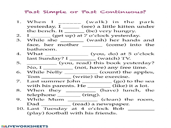 Learners look at the photos and about their hobbies. ANSWERS 1 b (past continuous) 2 c (past continuous and past simple) 3 a (past simple) |