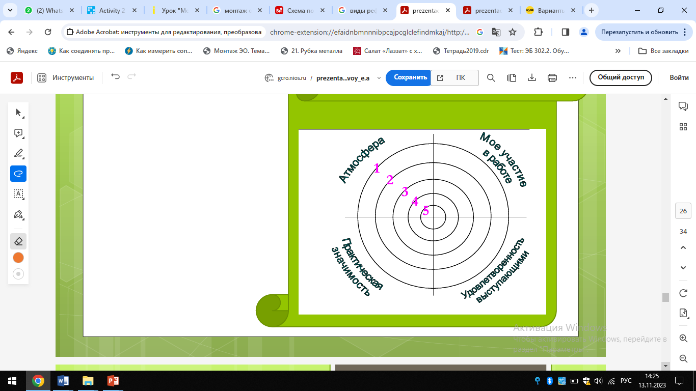 Каждая команда подводит итог урока. «Рефлексия «МИШЕНЬ» Студенты должны поставить точку в каждом секторе. Спасибо всем за урок! |