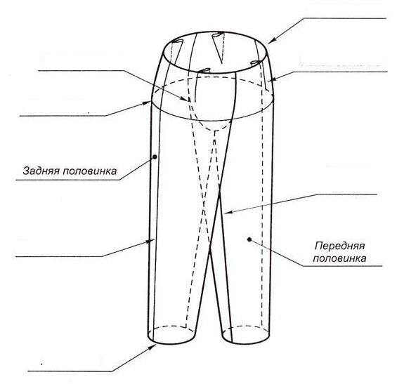 По какой формуле определяется ширина передней половинки брюк по линии бёдер?