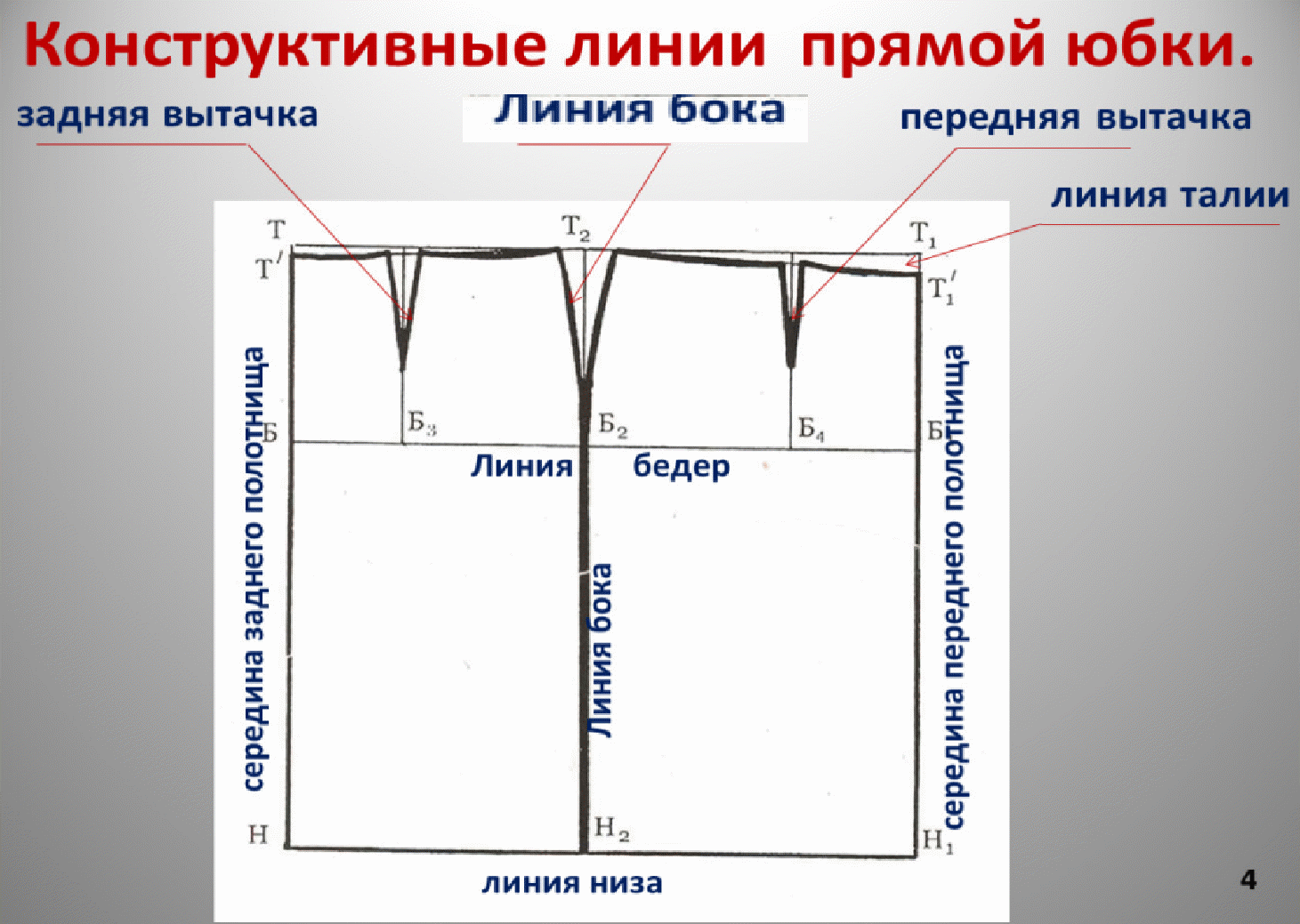 Соблюдение технологии построения прямой юбки (этапы, последовательность) |
