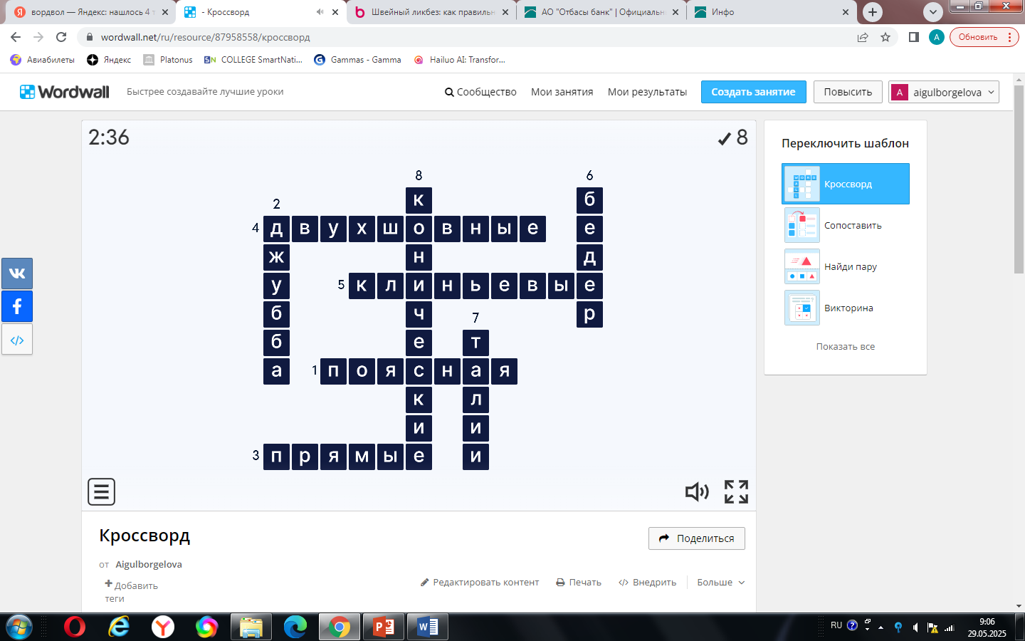 Учебно-методическое оснащение: Киімді конструкциялау және тігу технологиясы. Автор: А.Асанова. Г. Тастанбекова.. Швея портной –инструкционно технологических карт. Автор: Бровина.Е.В.