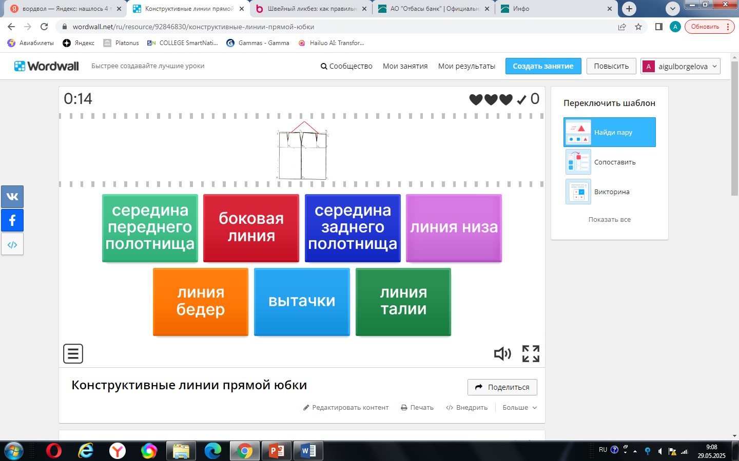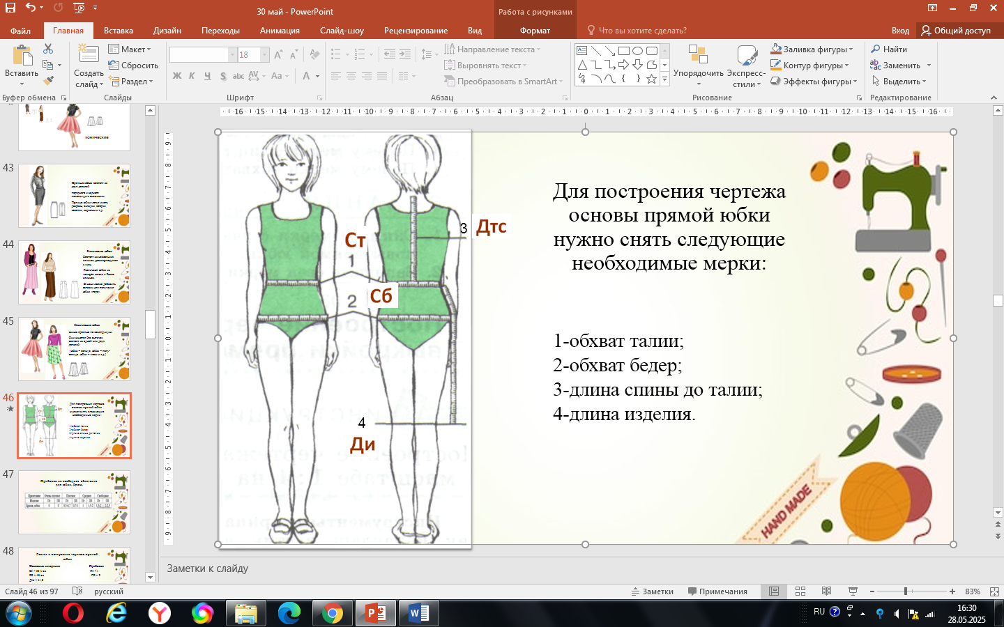 Открытый урок на тему "Расчет и построение чертежей основы прямой юбки"