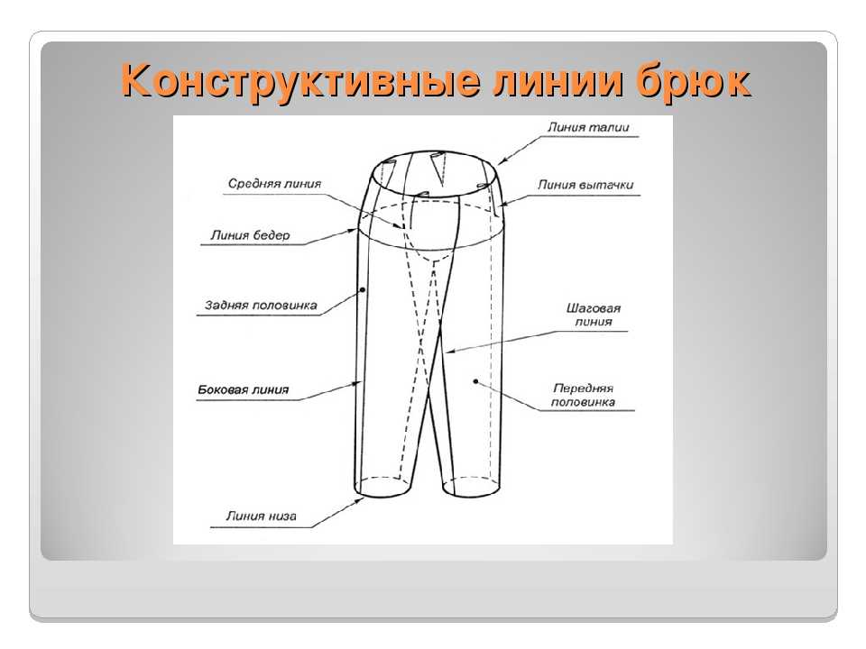 Как называется мерка, которую снимают вертикально от линии талии по боковой поверхности бедра до желаемой длины брюк? (Длина изделия (брюк)