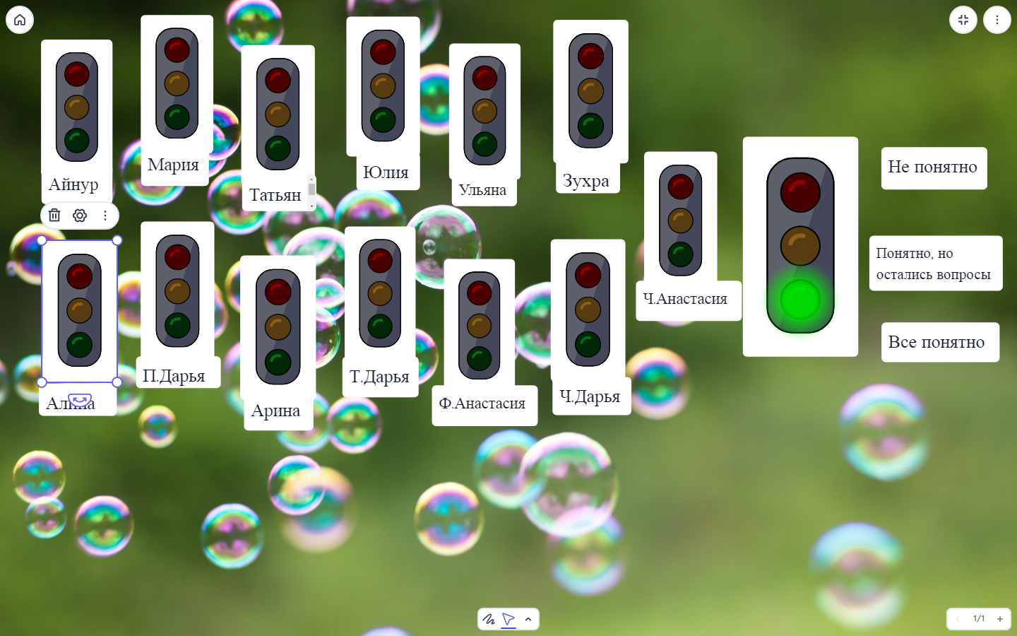 Учащиеся оценивают своё понимание материала, используя систему «Светофор» на платформе ClassroomScreen.