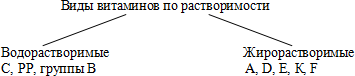 Г) Знакомство с отдельными группами: Перед знакомством учитель даёт понятие авитаминоз, гиповитаминоз, гипервитаминоз. Авитаминоз – отсутствие витамина в организме. Гиповитаминоз – недостаток витамина в организме Гипервитаминоз – избыточное поступление витаминов в организм. Обычно это наблюдается при употреблении синтетических препаратов витаминов и сопровождается самыми разнообразными признаками отравления. Наиболее токсичными являются витамины А и D которые часто дают маленьким детям. Иногда гипервитаминоз А возникает при приеме в пищу продуктов, содержащих большое количество этого витамина (овощи, печень морских животных). Из водорастворимых витаминов наиболее токсичным является витамин B1, большие дозы которого могут приводить к сильным аллергическим реакциям. При длительном приеме витамина B6 может наблюдаться повышение свертываемости крови.