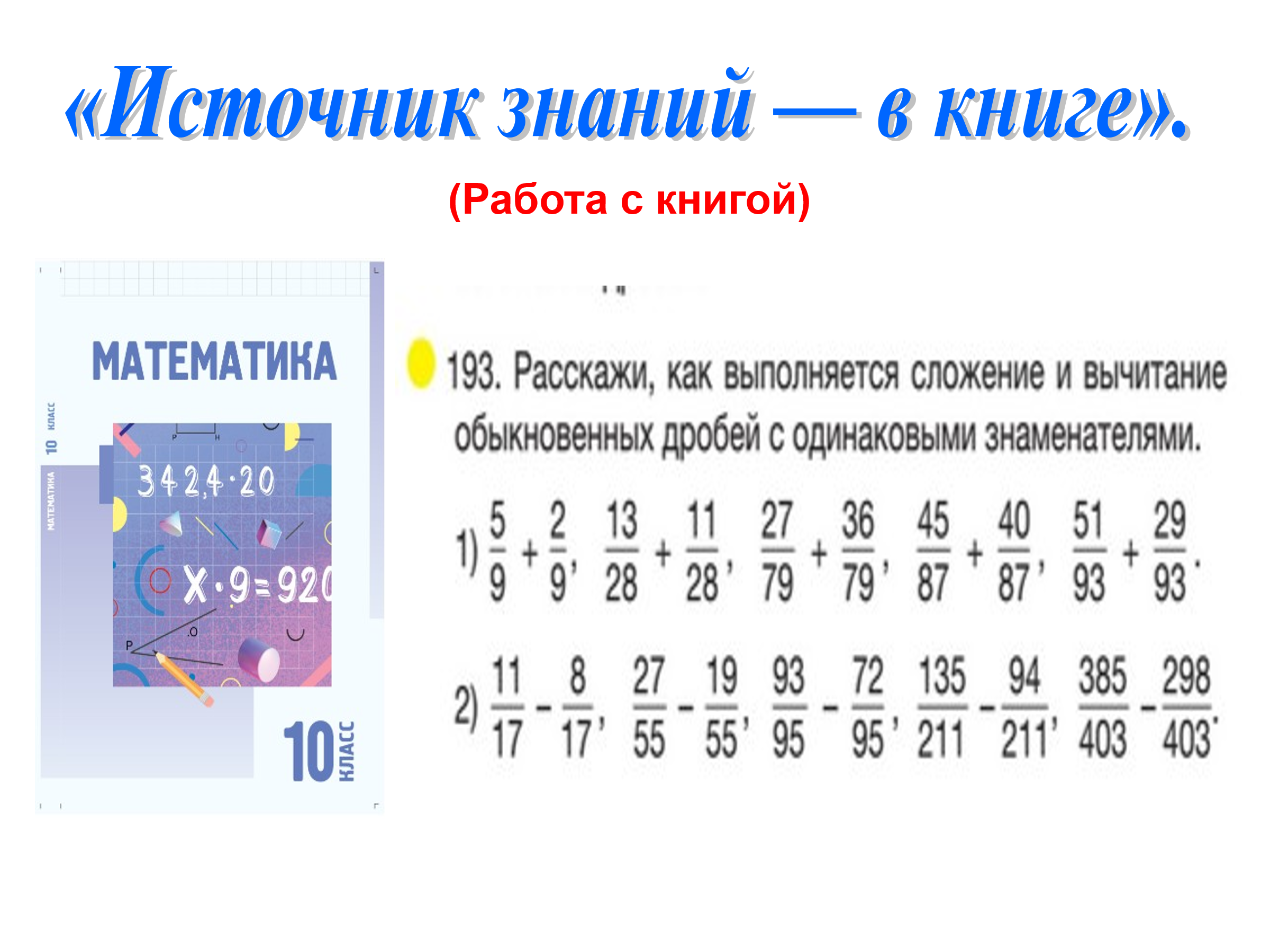 10.1.2.15 Выполнять сложение и вычитание обыкновенных дробей с одинаковыми знаменателями. |