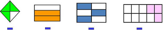 У: Какая это геометрическая фигура? Закрасьте 2/4 фигуры. в) самостоятельная работа (по индивидуальным карточкам). - I (уровень А) подбери к рисунку соответствующую дробь;