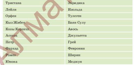 По данной таблице соотносит парами в правильном порядке литературных героев |