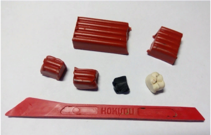 1.В начале работы необходимо рационально распределить пластилин, чтобы получить пропорциональные части щенка. Пластилин коричневого цвета делим на 4 части. Самая большая часть для туловища, вторая часть поменьше для головы и две маленьких одинаковых части для ушей и хвоста щенка. Также понадобится небольшой кусочек белого и черного пластилина для мордочки и глаз щенка.