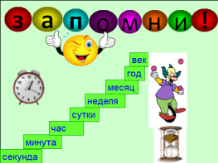 2.1.3.5. определять время в часах по циферблату в 12 часовом формате /различать единицы измерения времени: минута, час, день, неделя, месяц, год |
