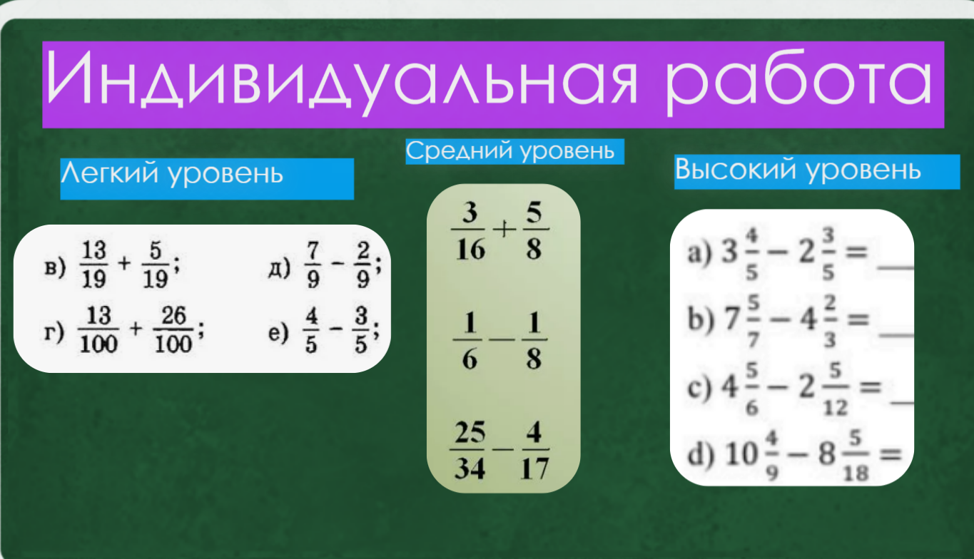 Открытый урок по математике 5 класс "Сложение и вычитание обыкновенных дробей"