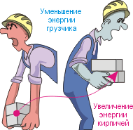 с орехом). Энергия грузчика уменьшается, так как его