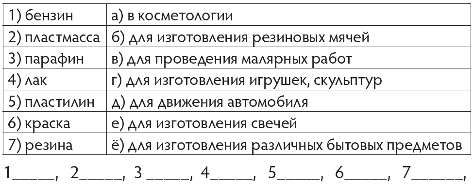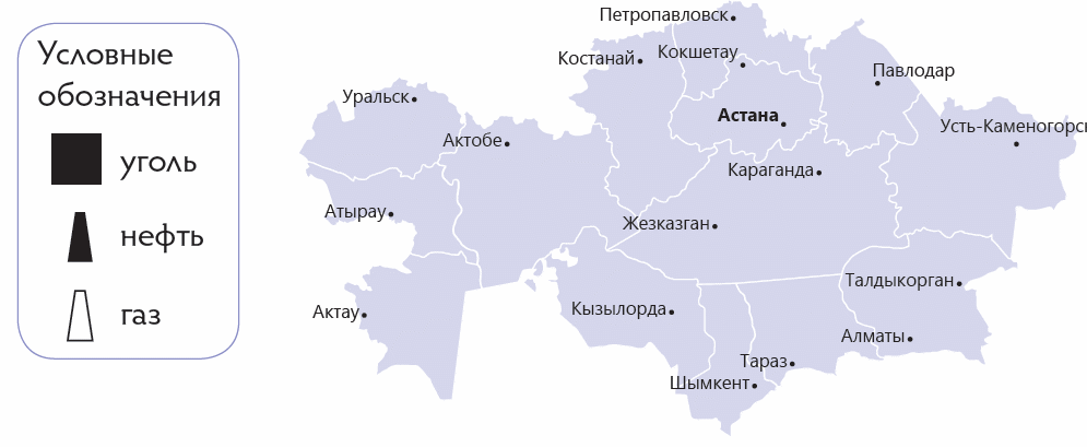 Напиши вывод Уголь в Казахстане добывается в месторождениях _______ _________________________. Нефть имеется на территориях областей _________________, ____________________. Запасы газа имеются __________________, __________________ Дескриптор: Отмечают нефтяные, газовые, рудные и угольные месторождения на контурной карте Казахстана. Записывают выводы (К) Коллективная работа. (У доски) Соотнеси продукты, получаемые из нефти, с их применением.