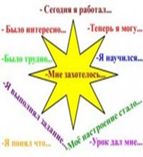 Сегодня я работал... - Теперь я могу... -Было интересно... - Я научился... -Было трудно... - Мое настроение стало... -Я выполнял задание... - Урок дал мне... - Я понял, что... - Мне захотелось... |